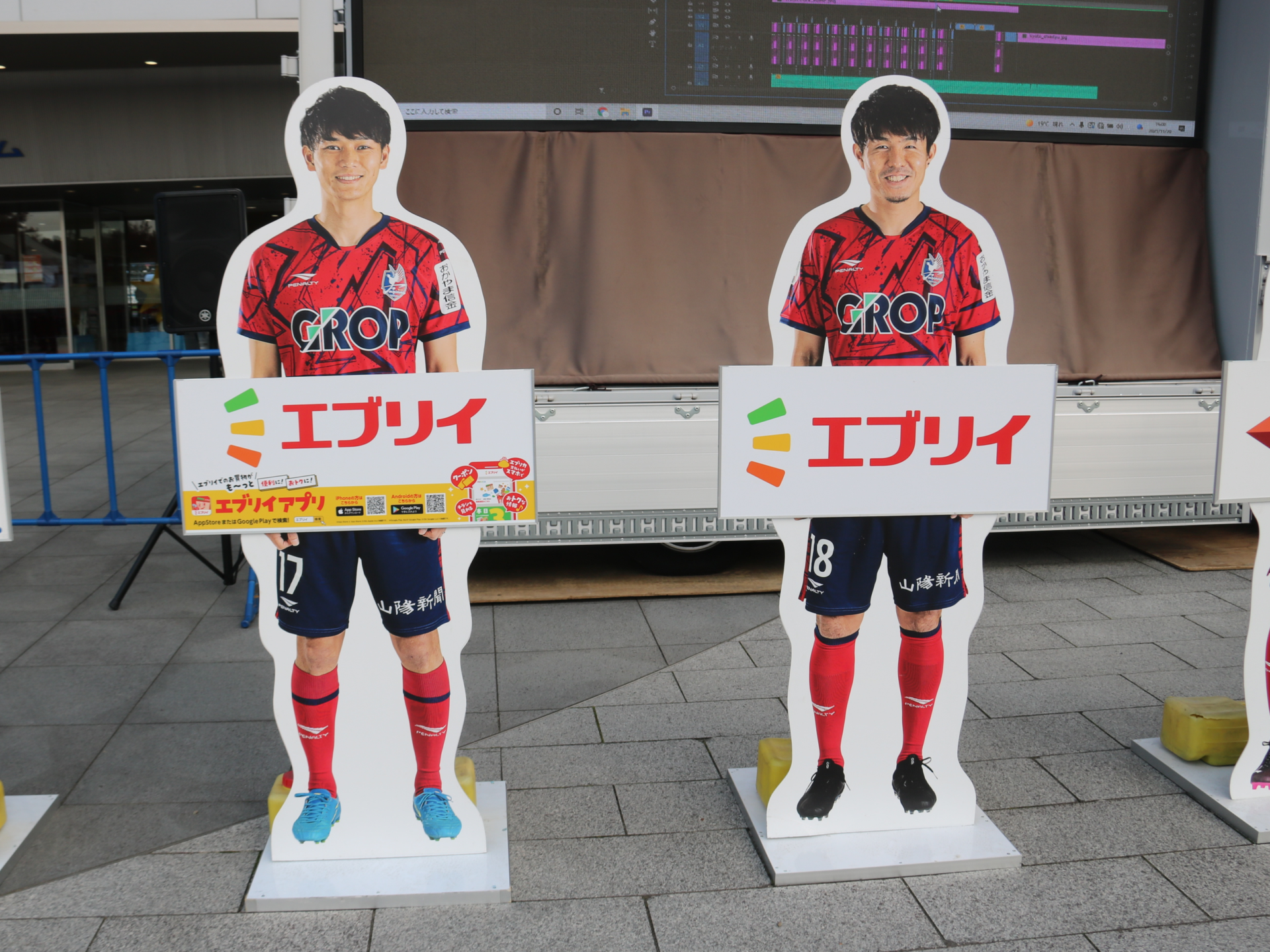 スタジアム前広場の「選手等身大パネル」にエブリイのロゴを掲出!