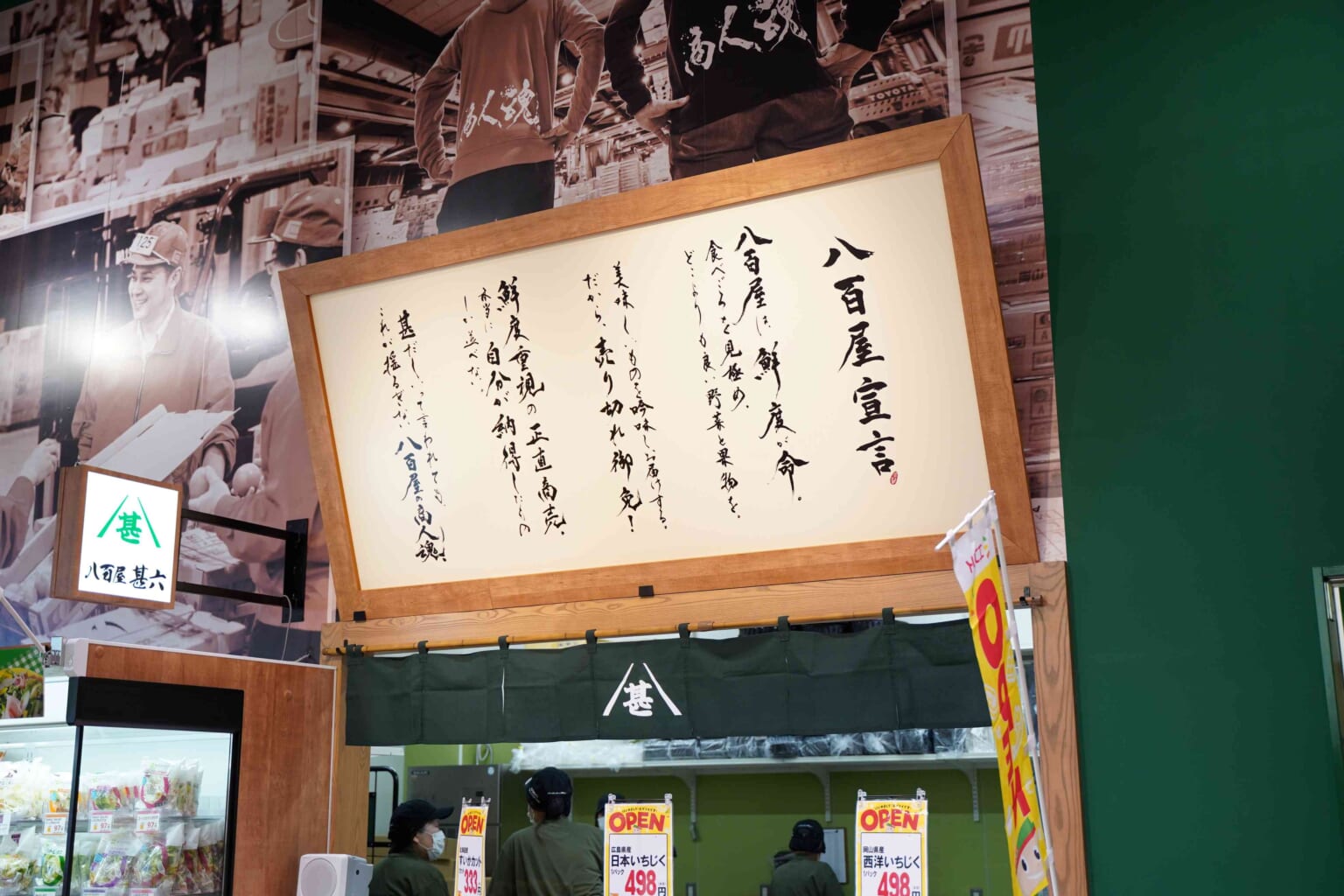 お店入口の「商人宣言」各コーナーの「宣言書」など、エブリイが大切にしている想いを魂を込めて書いていただきました。