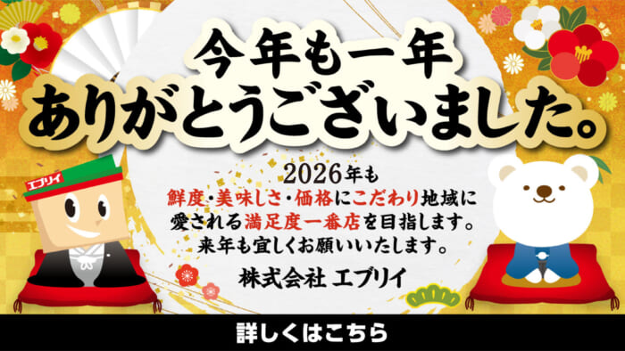 【販売店舗】エブリイ全店(業務スーパー堀南店・下中野店・三原本郷店・熊野店・宮内店・新市店は除く)