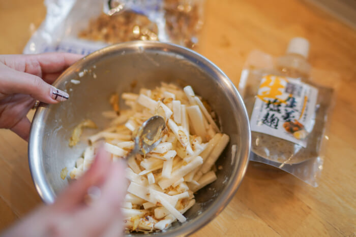 はちみつを加えることで塩味がまろやかな生姜塩麴に変身