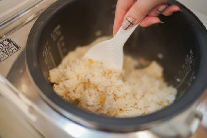 洗ったお米1合に対して生姜塩糀20gを加え、いつも通り炊飯すれば