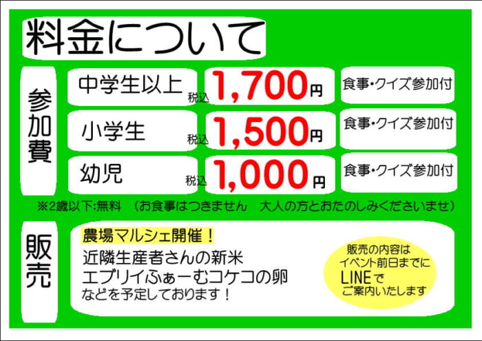 2歳以下は食事がつかず参加費も無料となりますご確認お願いいたします