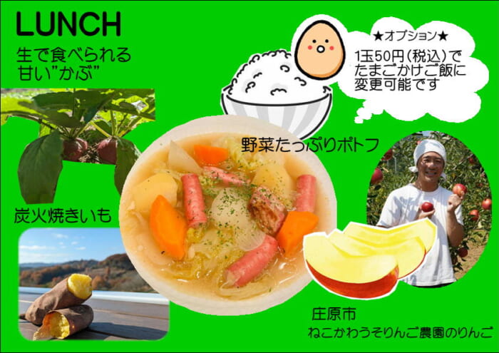※今回のランチでは、農園の平飼い養鶏のたまごについては、必要な方のみ別途1玉50円