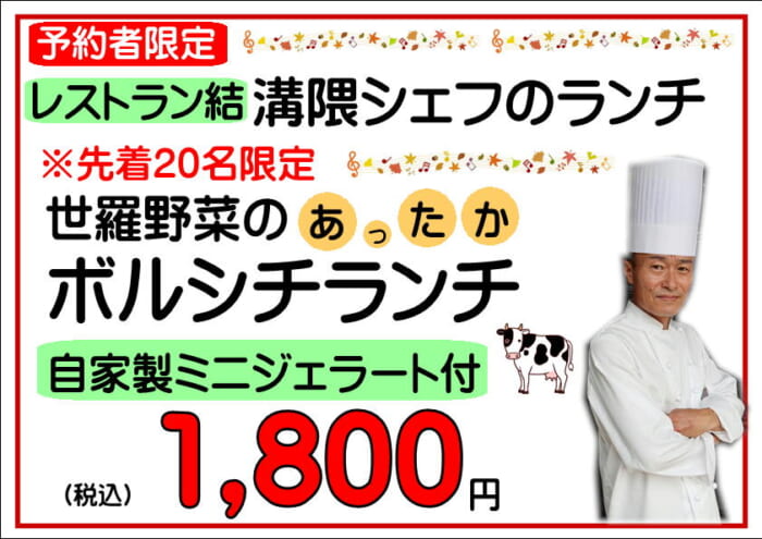今回のイベントは、シェフのランチについては事前メールでの予約になります