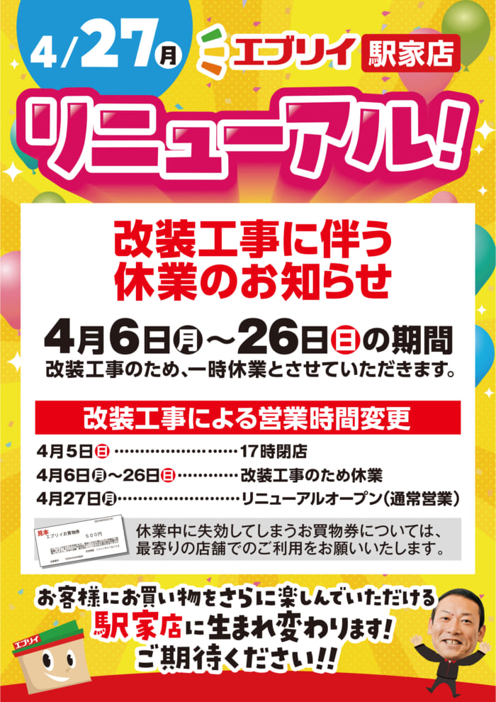 いつもエブリイ駅家店をご利用いただきまして、誠にありがとうございます。