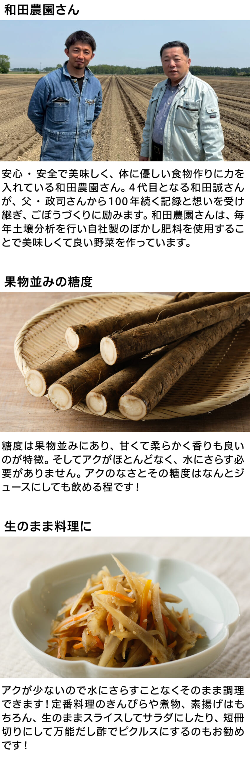 北海道十勝産の高糖度ごぼう。